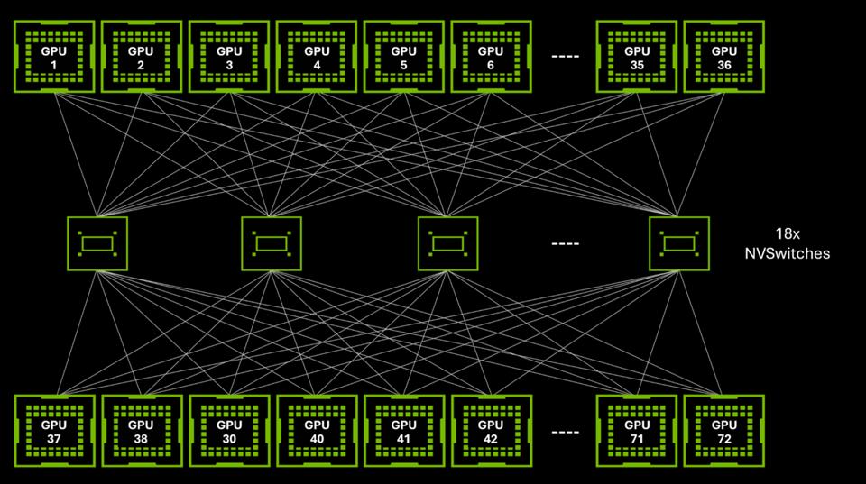 NVSwitch configuration for the GB200 NVL72 rack system (NVidia)